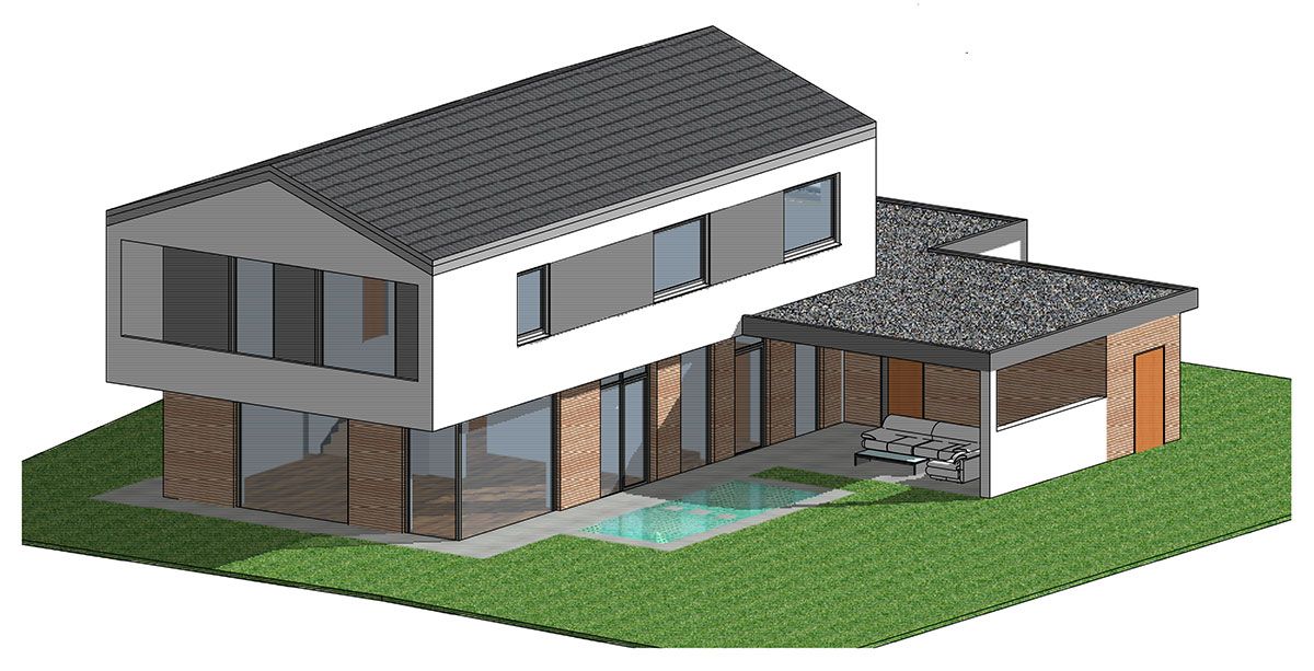 3 D Plan für modernes Einfamilienwohnhaus in Hengersberg.
